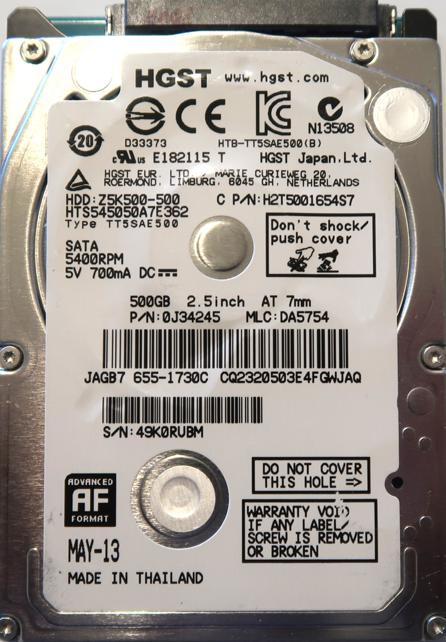 Hitachi HTS545050A7E362 3Gb/s 16MB 5400rpm Z5K500-500 655-1730C 500gb 2.5" Sata