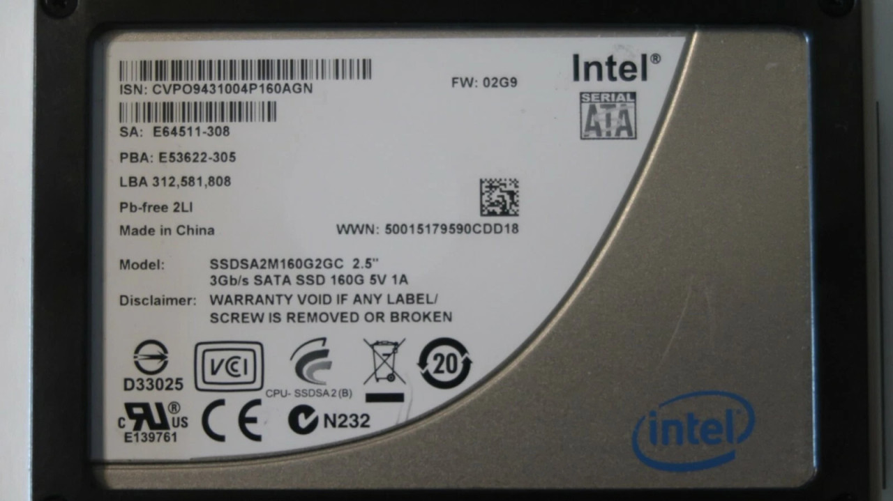Intel SSDSA2M160G2GC FW:02G9 SA:E64511-308 160gb 2.5" Sata SSD