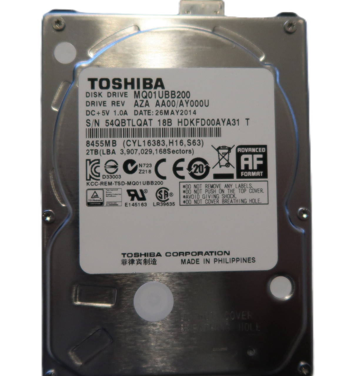 This item is for one Toshiba MQ01UBB200 HDKFD00AYA31 T (44QB) AZA AA00/AY000U 2000gbUSB Philippines 05/2014. This drive and all of our drives are professionally tested and wiped of all data on a DOD (Department of Defense) certified machine at OEM level. Once they pass our quality control they are in 100% perfect working condition!