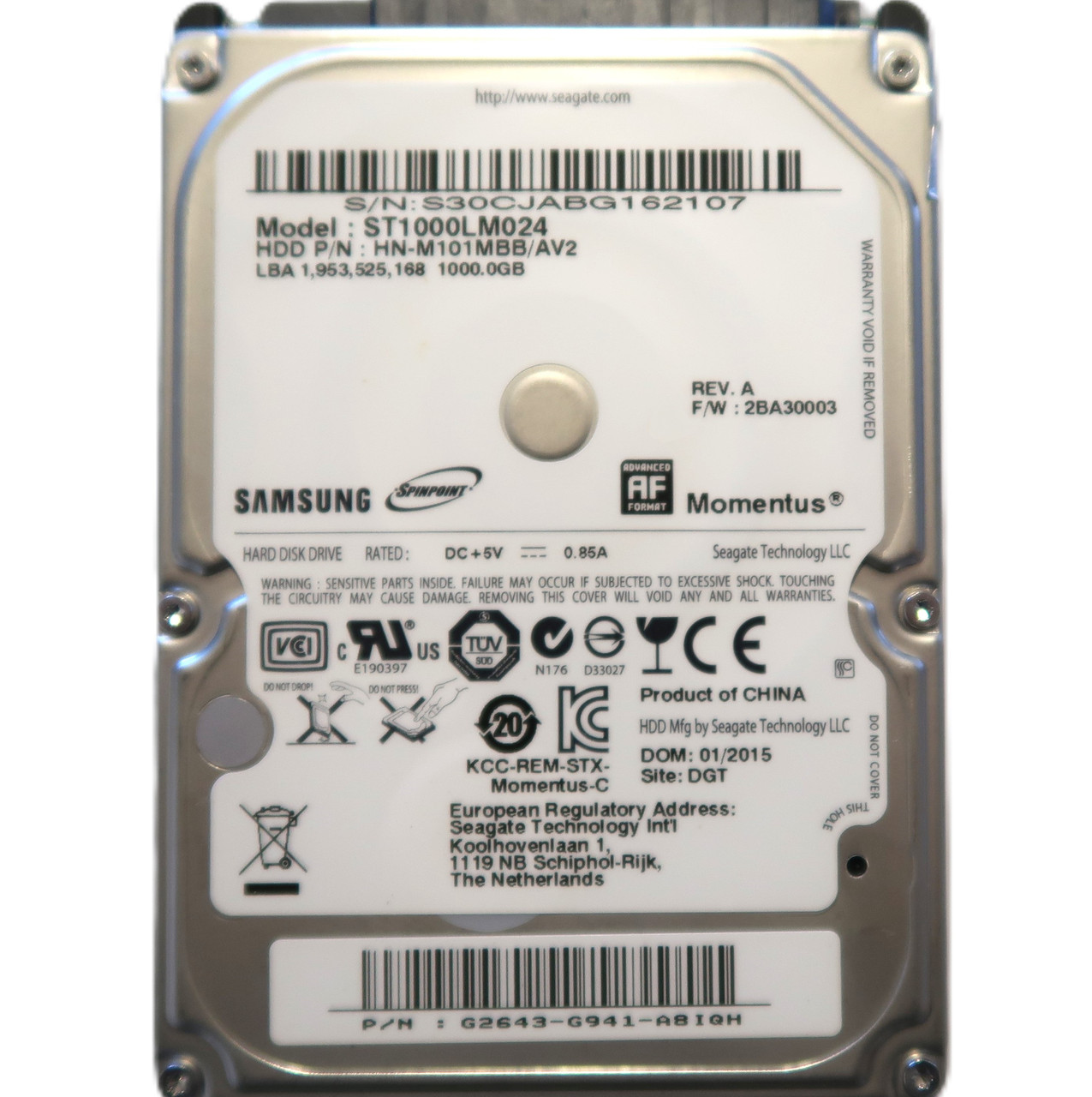 This item is for one Samsung ST1000LM024 HN-M101MBB/AV2 2BA30003 G2643-G941 2.5" 1TB Sata HDD 01/2015. This drive and all of our drives are professionally tested and cleaned on a DOD certified machine at Oem level. We do not use software for this process!
