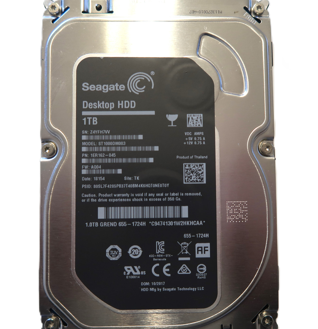 This item is for one Seagate ST1000DM003 1ER162-045 AQ04 (Z4YF) TK Thailand 1TB 3.5" Sata HDD 10/2017. This drive and all of our drives are professionally tested and wiped of all data on a DOD (Department of Defense) certified machine at OEM level. Once they pass our quality control they are in 100% perfect working condition!