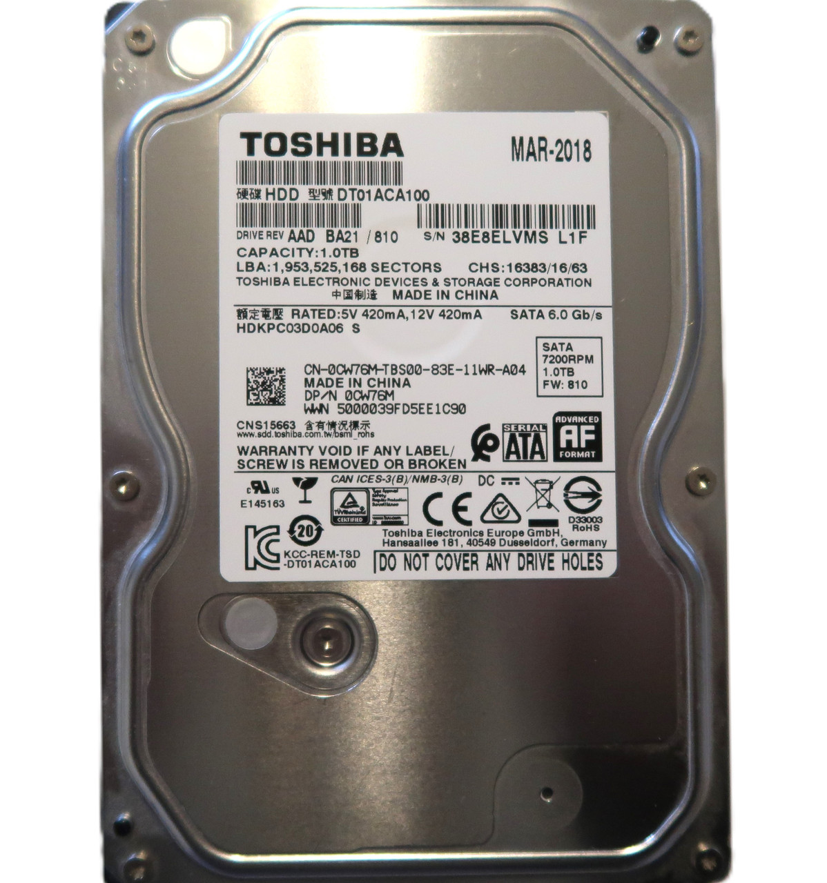 This item is for one Toshiba DT01ACA100 HDKPC03D0A06 S AAD BA21/810 China 3.5" 1TB Sata HDD MAR-2018. This drive and all of our drives are professionally tested and wiped of all data on a DOD (Department of Defense) certified machine at OEM level. Once they pass our quality control they are in 100% perfect working condition!