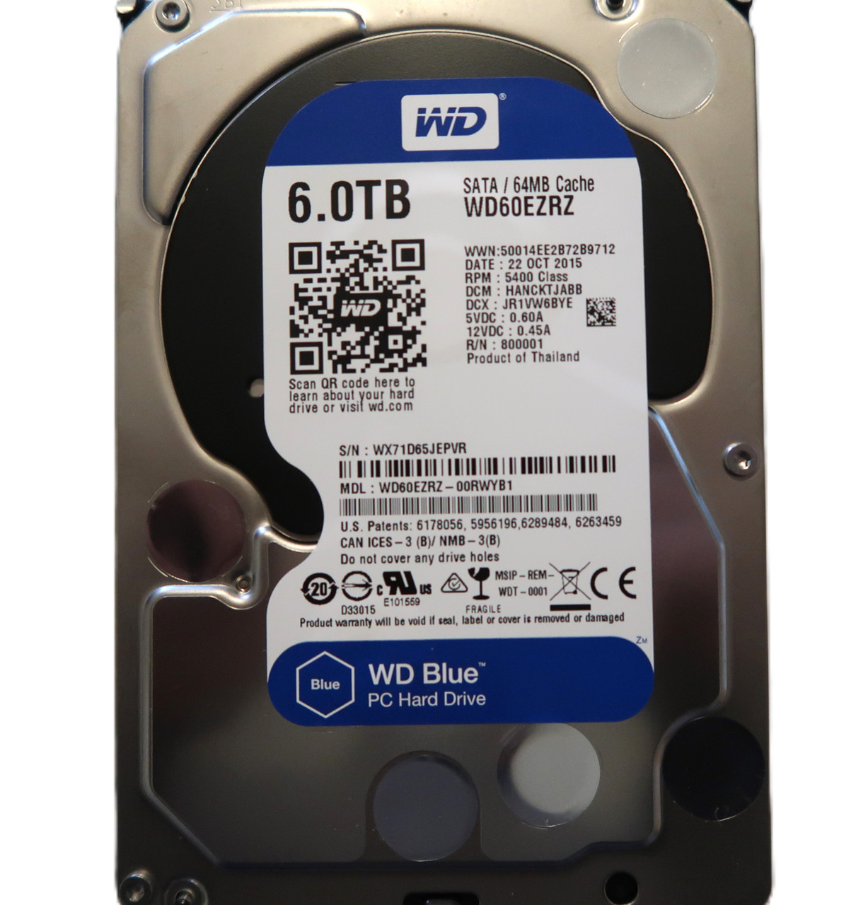 This item is for one Western Digital WD60EZRZ-00RWYB1 HANCKTJABB (WX71) Thailand 6TB 3.5" Sata HDD OCT/2015. This drive and all of our drives are professionally tested and wiped of all data on a DOD (Department of Defense) certified machine at OEM level. Once they pass our quality control they are in 100% perfect working condition!