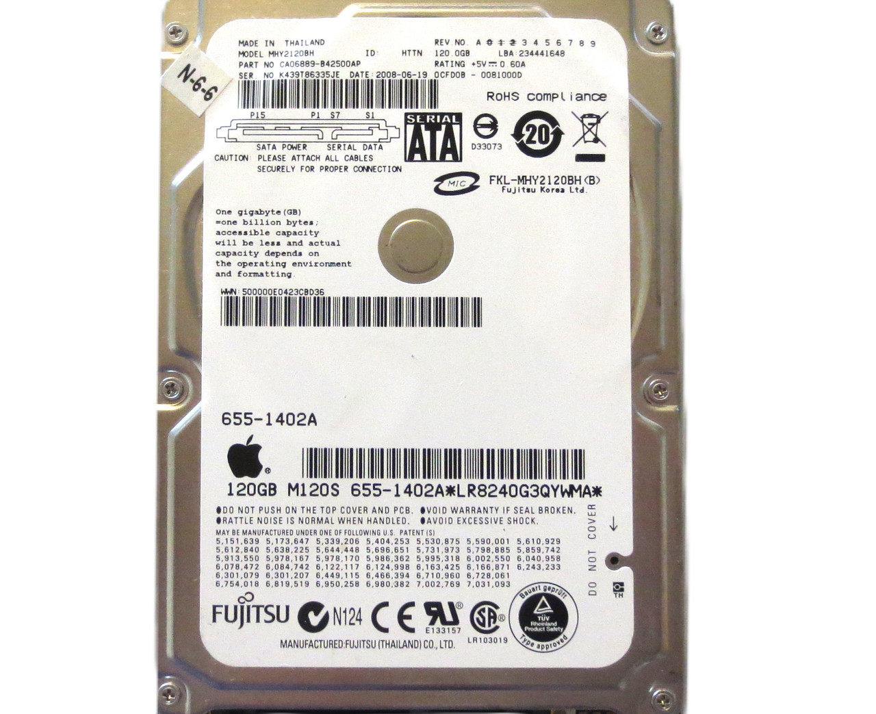 This item is for one Fujitsu MHY2120BH CA06889-B42500AP 0CFD0B-0081000D (K43) Thailand 120gb 2008-06. This drive and all of our drives are professionally tested and wiped of all data on a DOD (Department of Defense) certified machine at OEM level. Once they pass our quality control they are in 100% perfect working condition!