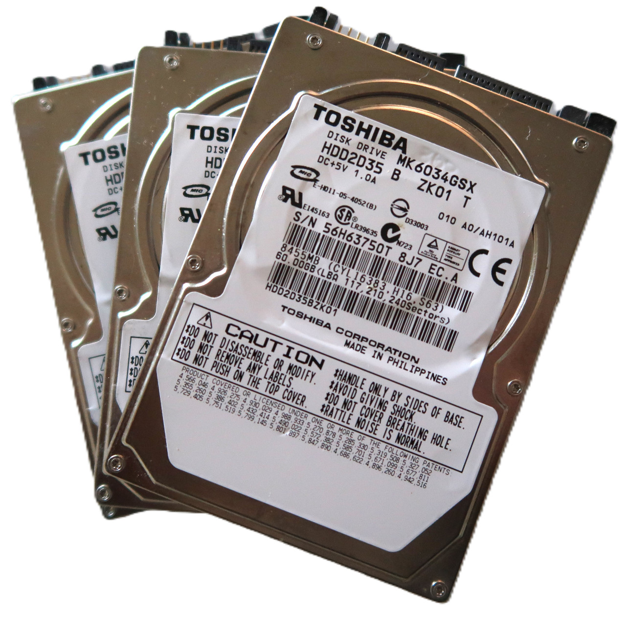 This item is for one *Lot of 3* Toshiba MK6034GSX 5400rpm 1.5Gb/s 8MB 2.5" 60gb Sata hard drives.