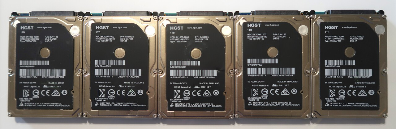 Lot of 5 (5 total drives) Hitachi HTS541010A9E632 2.5" 1TB 5400rpm 8MB Cache Sata III Laptop HDD