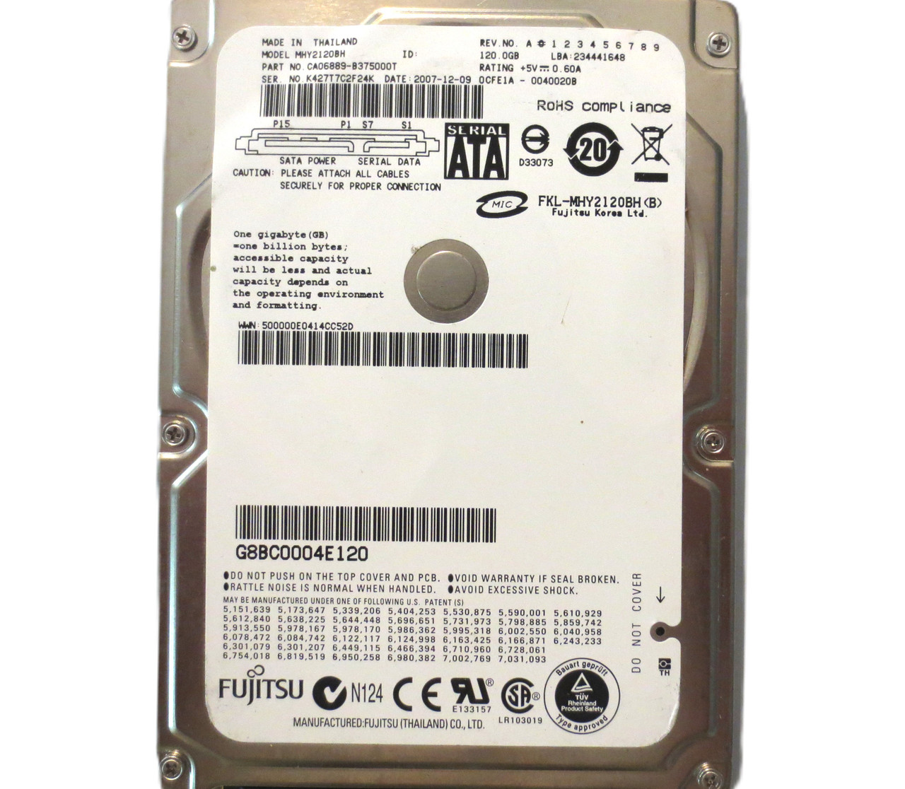 This item is for one Fujitsu MHY2120BH CA06889-B375000T 0CFE1A-0040020B (K42) Thailand 120gb Sata 2007-12-09. This drive and all of our drives are professionally tested and cleaned on a DOD certified machine at Oem level. We do not use software for this process! Once they have passed our Quality control they are 100% in perfect working condition!