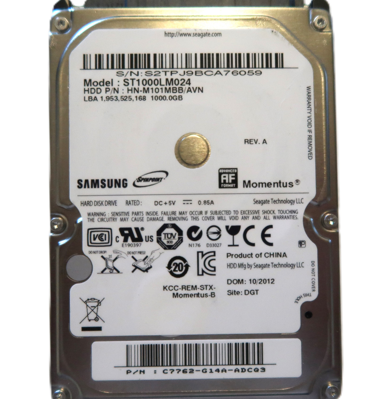 This item is for one Samsung ST1000LM024 HN-M101MBB/AVN REV A (S2TP) C7762-G14A DGT 2.5" 1TB 10/2012. This drive and all of our drives are professionally tested and cleaned on a DOD certified machine at Oem level. We do not use software for this process!