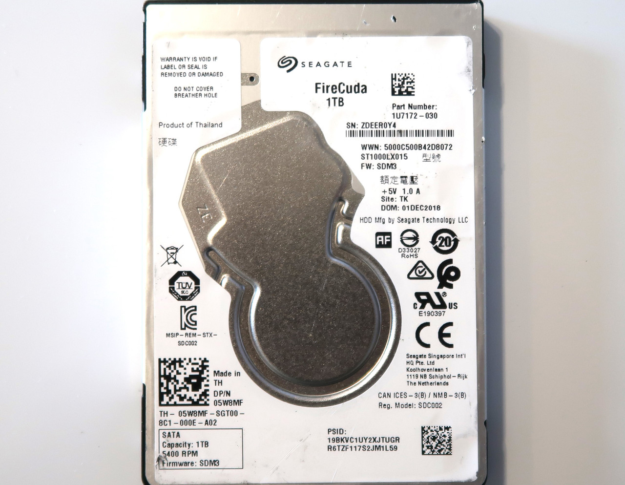 This item is for one Seagate ST1000LX015 1U7172-030 SDM3 (ZDEE) TK Thailand 2.5" 1TB Sata 01DEC2018. This drive and all of our drives are professionally tested and wiped of all data on a DOD (Department of Defense) certified machine at OEM level. Once they pass our quality control they are in 100% perfect working condition!