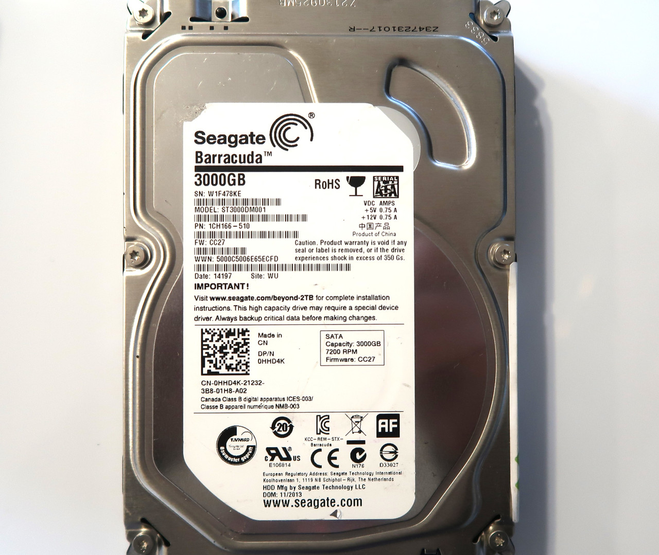 This item is for one Seagate ST3000DM001 1CH166-510 CC27 (W1F4) WU 3TB Sata 3.5" China HDD 11/2013. This drive and all of our drives are professionally tested and wiped of all data on a DOD (Department of Defense) certified machine at OEM level. Once they pass our quality control they are in 100% perfect working condition!