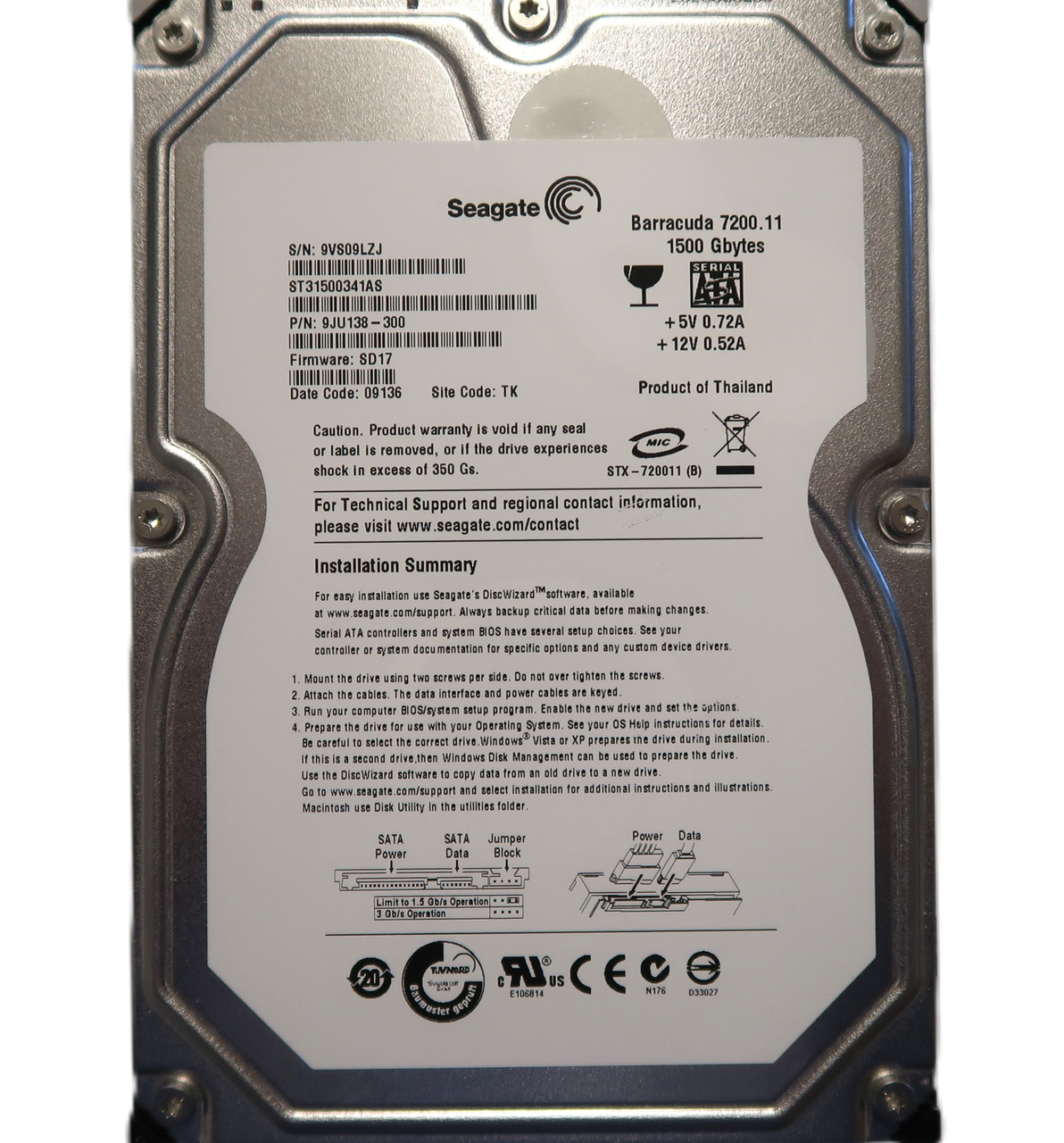 This item is for one Seagate ST31500341AS 9JU138-300 SD17 (9VS) TK Thailand 1.5TB Sata HDD OCT/2008. This drive and all of our drives are professionally tested and wiped of all data on a DOD (Department of Defense) certified machine at OEM level. Once they pass our quality control they are in 100% perfect working condition!