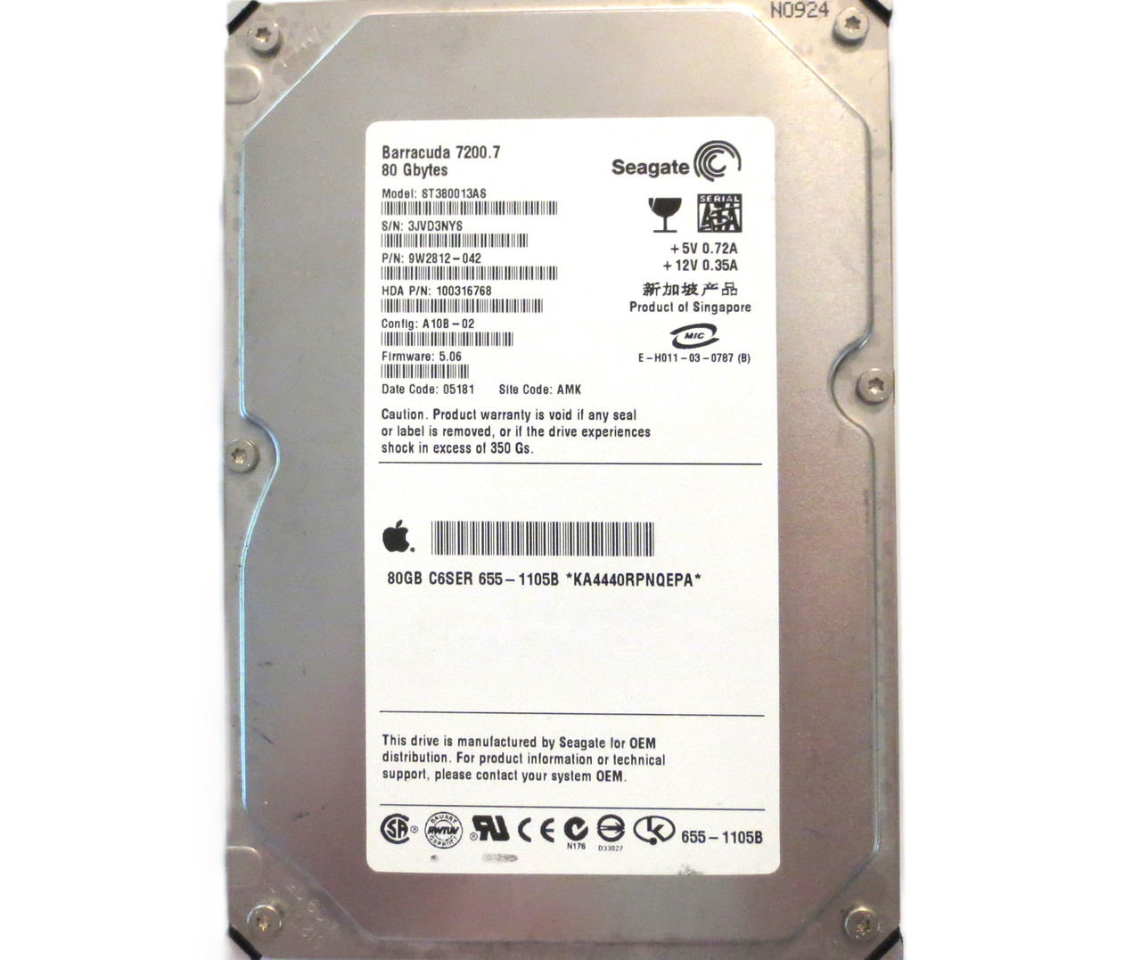 This item is for one Seagate ST380013AS 9W2812-042 5.06 AMK (3JV) Singapore 80gb Sata 10/2004. This drive and all of our drives are professionally tested and wiped of all data on a DOD (Department of Defense) certified machine at OEM level. Once they pass our quality control they are in 100% perfect working condition!