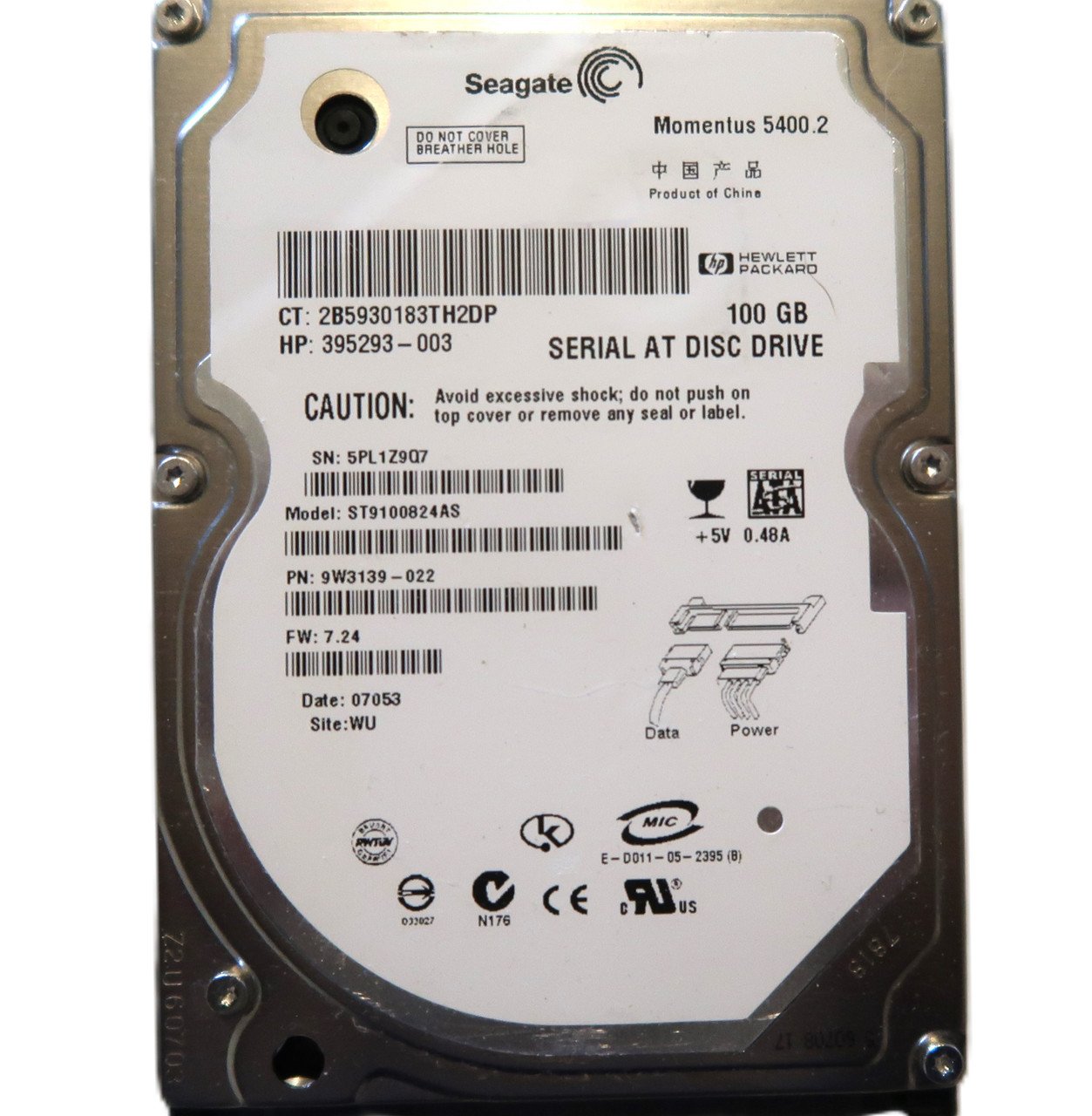 This item is for one Seagate ST9100824AS 9W3139-022 7.24 (5PL) WU China 100gb 2.5" Sata HDD 07/2006. This drive and all of our drives are professionally tested and cleaned on a DOD certified machine at Oem level. We do not use software for this process! Once they have passed our Quality control they are 100% in perfect working condition!