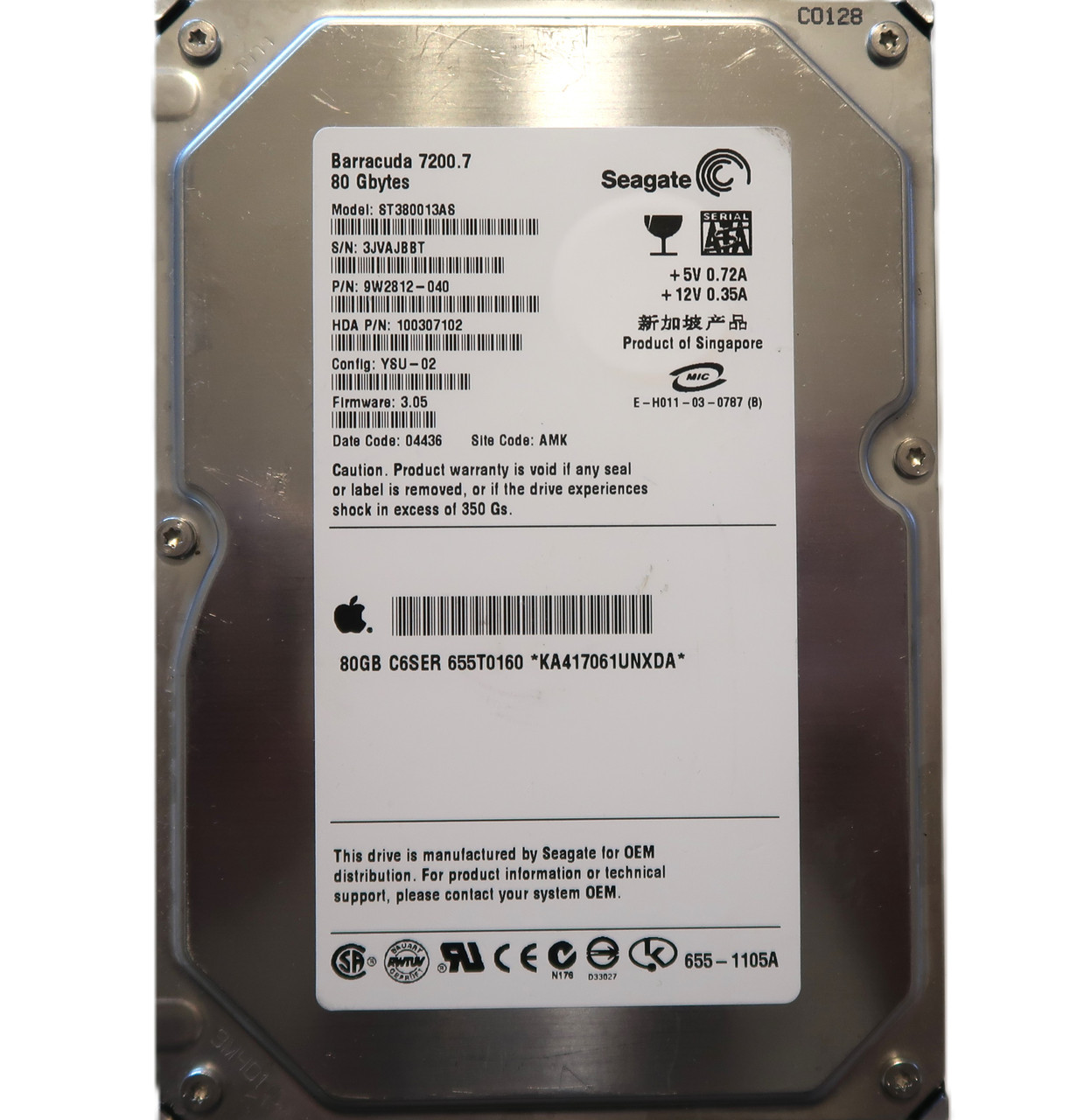 This item is for one Seagate ST380013AS 9W2812-040 3.05 AMK Singapre (3JV) 3.5" 80gb Sata HDD 04/2004. This drive and all of our drives are professionally tested and wiped of all data on a DOD (Department of Defense) certified machine at OEM level. Once they pass our quality control they are in 100% perfect working condition!