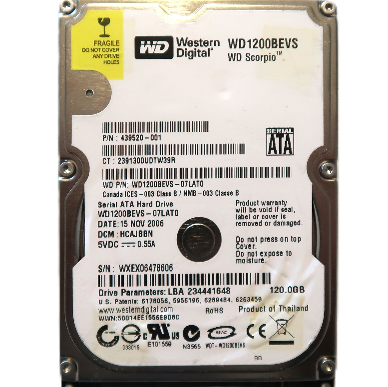 This item is for one Western Digital WD1200BEVS-07LAT0 HCAJBBN (WXE) Thailand 2.5" 120gb Sata HDD NOV/2006. This drive and all of our drives are professionally tested and cleaned on a DOD certified machine at Oem level. We do not use software for this process! Once they have passed our Quality control they are 100% in perfect working condition!