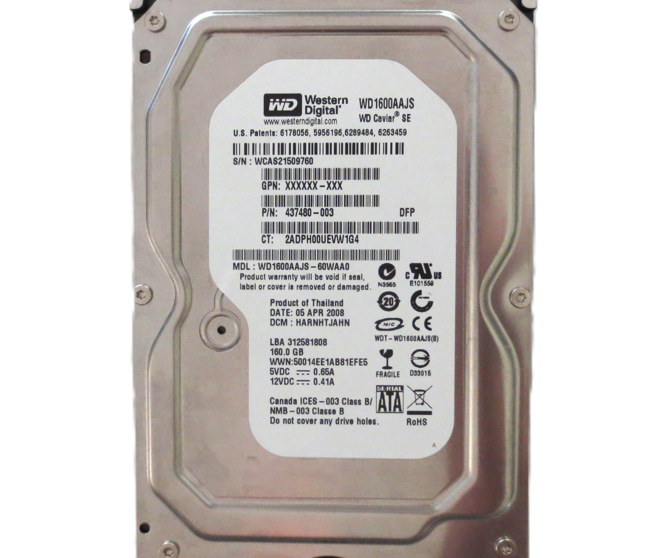 WD WD1600AAJS-60WAA0 HARNHTJAHN (WCAS) Thailand 160gb Sata 3.5" HDD APR-2008