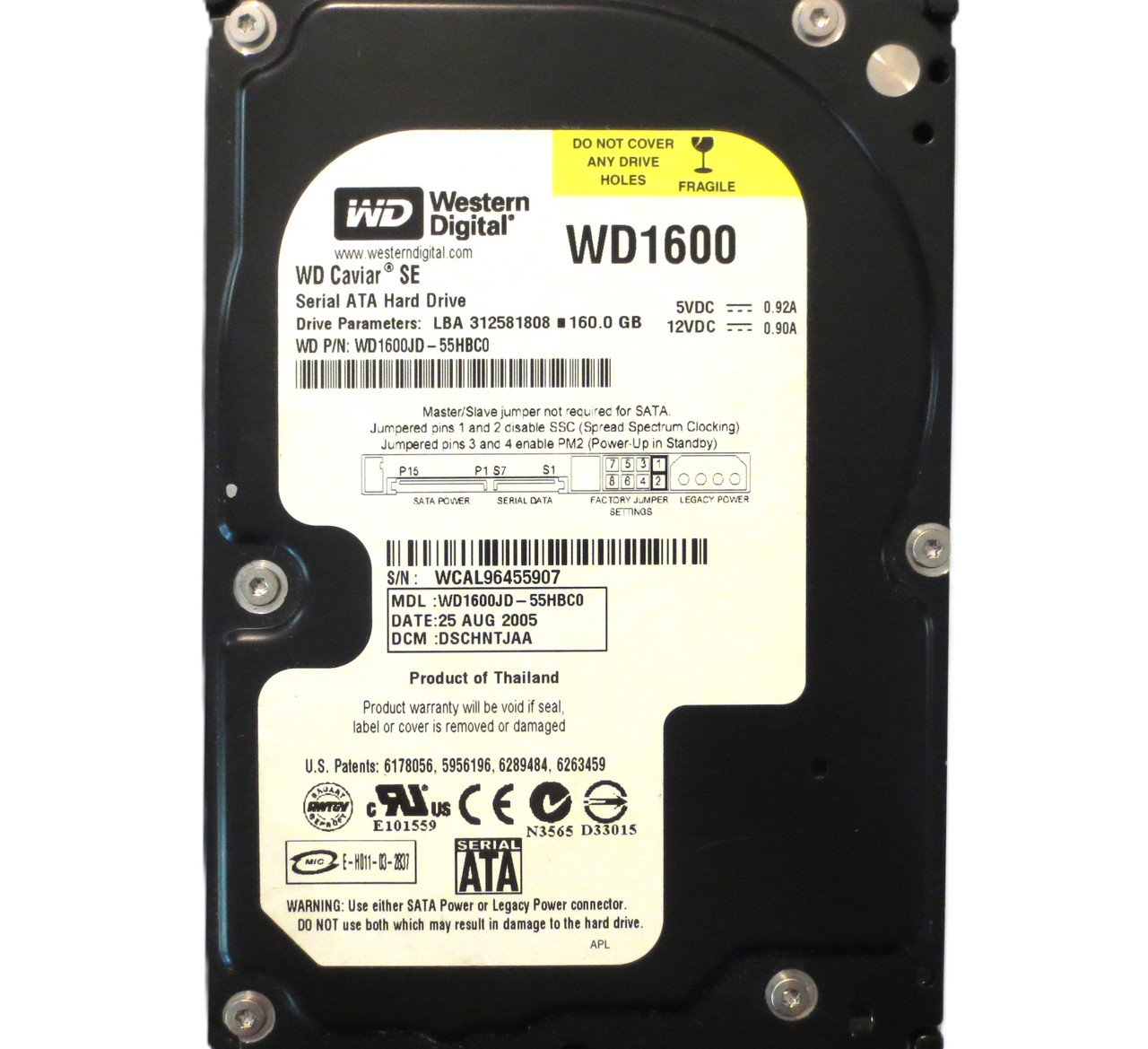 This item is for one Western Digital WD1600JD-55HBC0 DSCHNTJAA (WCAL) Thailand 160gb Sata 3.5" HDD AUG.2005. This drive and all of our drives are professionally tested and cleaned on a DOD certified machine at Oem level. We do not use software for this process! Once they have passed our Quality control they are 100% in perfect working condition!