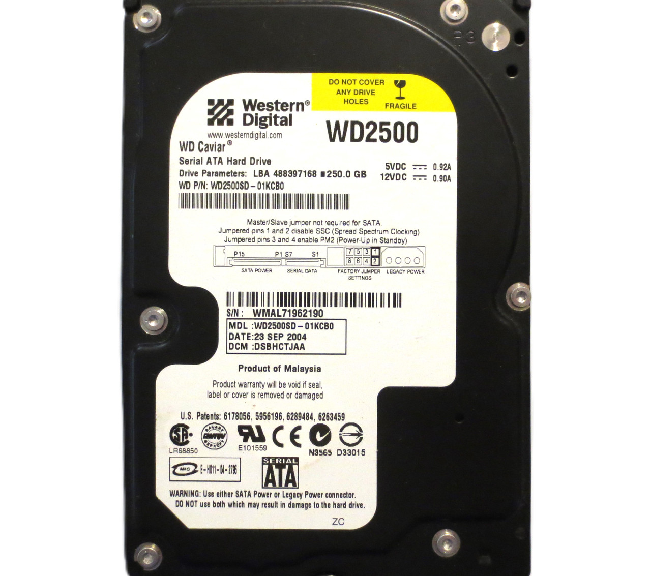 This item is for one Western Digital WD2500SD-01KCB0 DSBHCTJAA (WMAL) Malaysia 250gb 3.5" Sata HDD SEP2004. This drive and all of our drives are professionally tested and cleaned on a DOD certified machine at Oem level. We do not use software for this process! Once they have passed our Quality control they are 100% in perfect working condition!