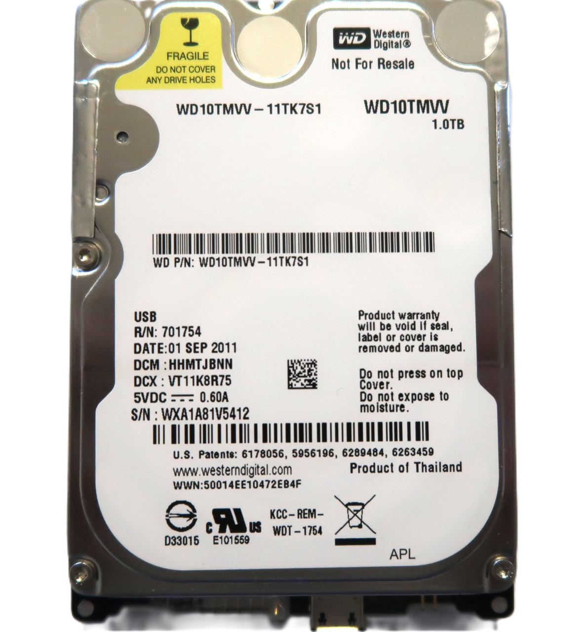 This item is for one Western Digital WD10TMVV-11TK7S1 HHMTJBNN Thailand (WXA1) 1TB USB SEP/2011. This drive and all of our drives are professionally tested and cleaned on a DOD certified machine at Oem level. We do not use software for this process! Once they have passed our Quality control they are 100% in perfect working condition!